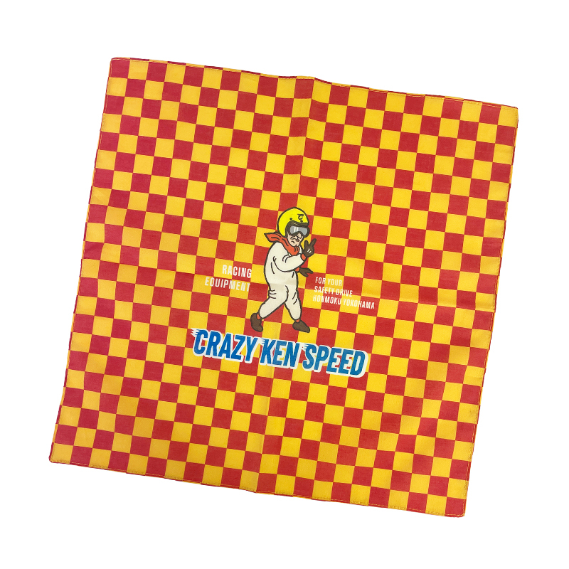 1960年代のレースマンガを彷彿とさせる昭和レーシングテイスト抜群のハンケチ。